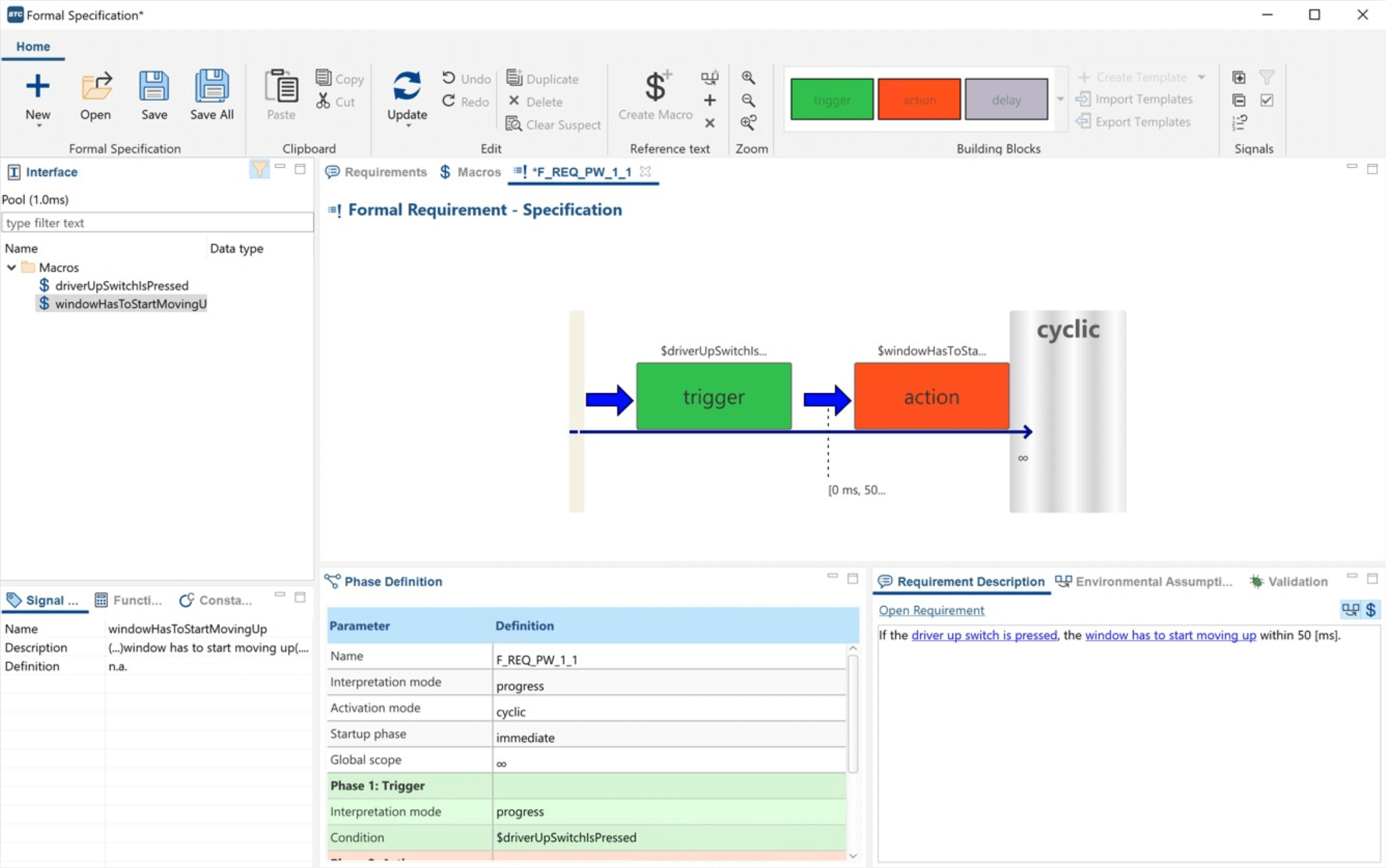 In the last workflow step, the macros are mapped to real interface objects of the system-under-test – making the requirement formal and machine-readable.